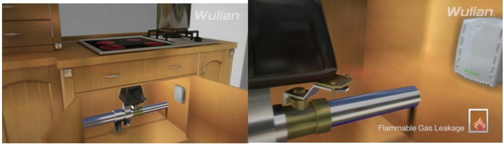 Next, let’s move to the kitchen, Wulian smart home flammable gas detector and manipulator.